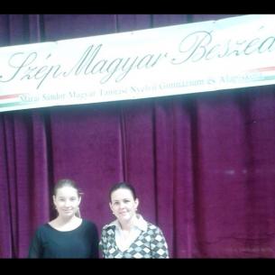 Iskolánkat Mórocz Marcella 4.évfolyamos tanulónk képviselte, aki kimagasló teljesítményt nyújtott, így önmagát és kísérő tanárát is meglepte fellépésével. A díjjazásról ugyan lecsúsztunk, de ahogyan azt a zsűri elnöke is hangsúlyozta- „ a versenynek a döntő szintjén nincsenek vesztesei, ide már mindenki győztesként érkezett.“ A megmérettetés célja az volt, hogy teret adjon azoknak a tehetséges tanulóknak, akik számára az anyanyelv ápolása küldetést jelent.