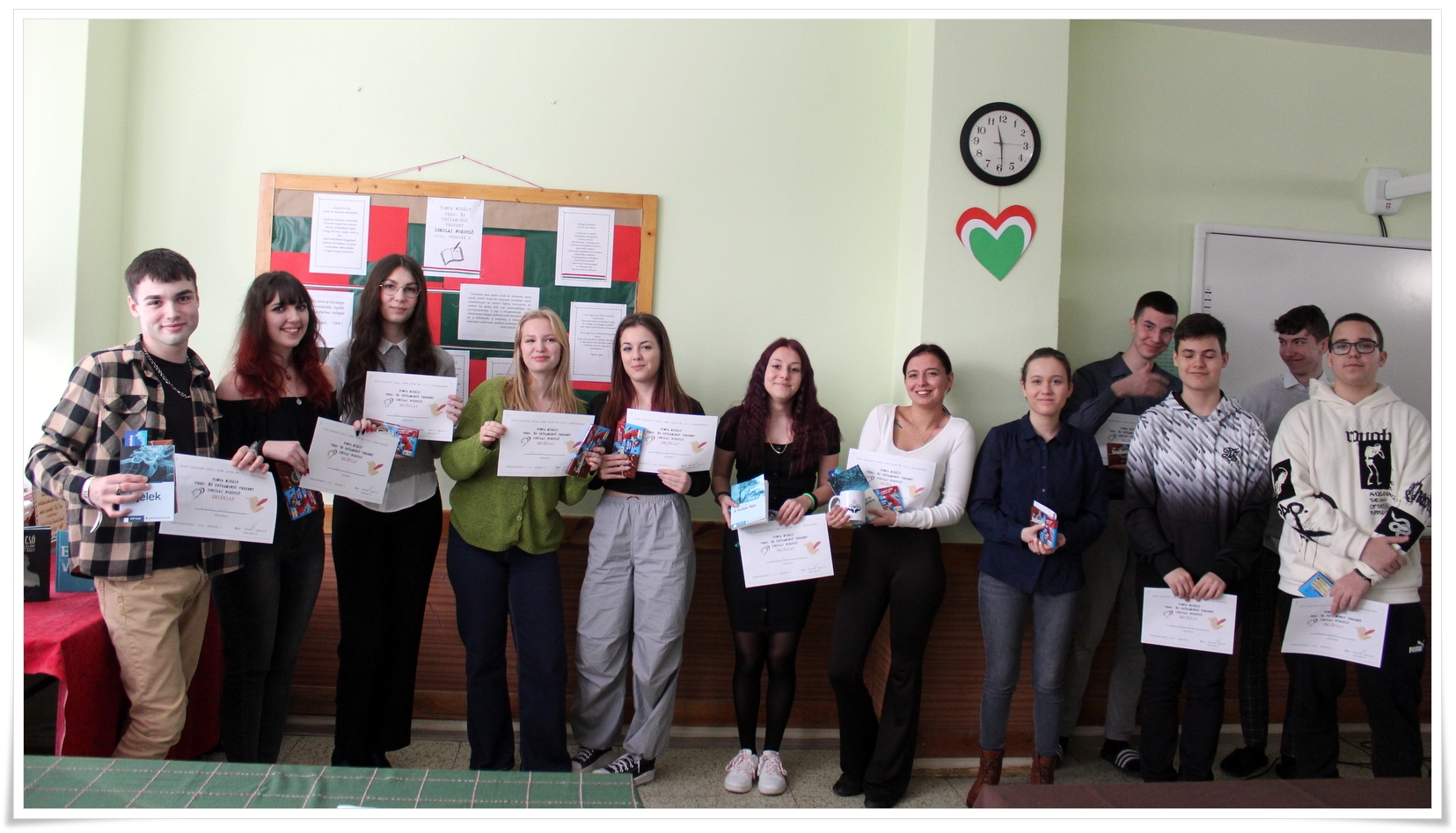 2023. február 6-án került megrendezésre a Tompa Mihály Vers- és Prózamondó Verseny iskolai fordulója. A megmérettetésen 12 irodalomkedvelő diák vett részt. Nagy többségük klasszikus szerzők alkotásait adta elő, de akadtak olyanok is, akik kortárs költők műveit szavalták el. A zsűri rendkívül elégedett volt a szavalatokkal. Szokás szerint nehezen jutottak döntésre abban, hogy kik jussanak tovább. Ezúttal Kubicsek Vivien (IV.A), Perleczky Balázs II.B, Kürthy Réka (I.SM), Győri Jázmin (I.B), Csápai Balázs (III.A), Bíró Leila (I.A), Mezei Lili (V.D), Győri Vivien (III.D) képviselik iskolánkat a járási fordulón.